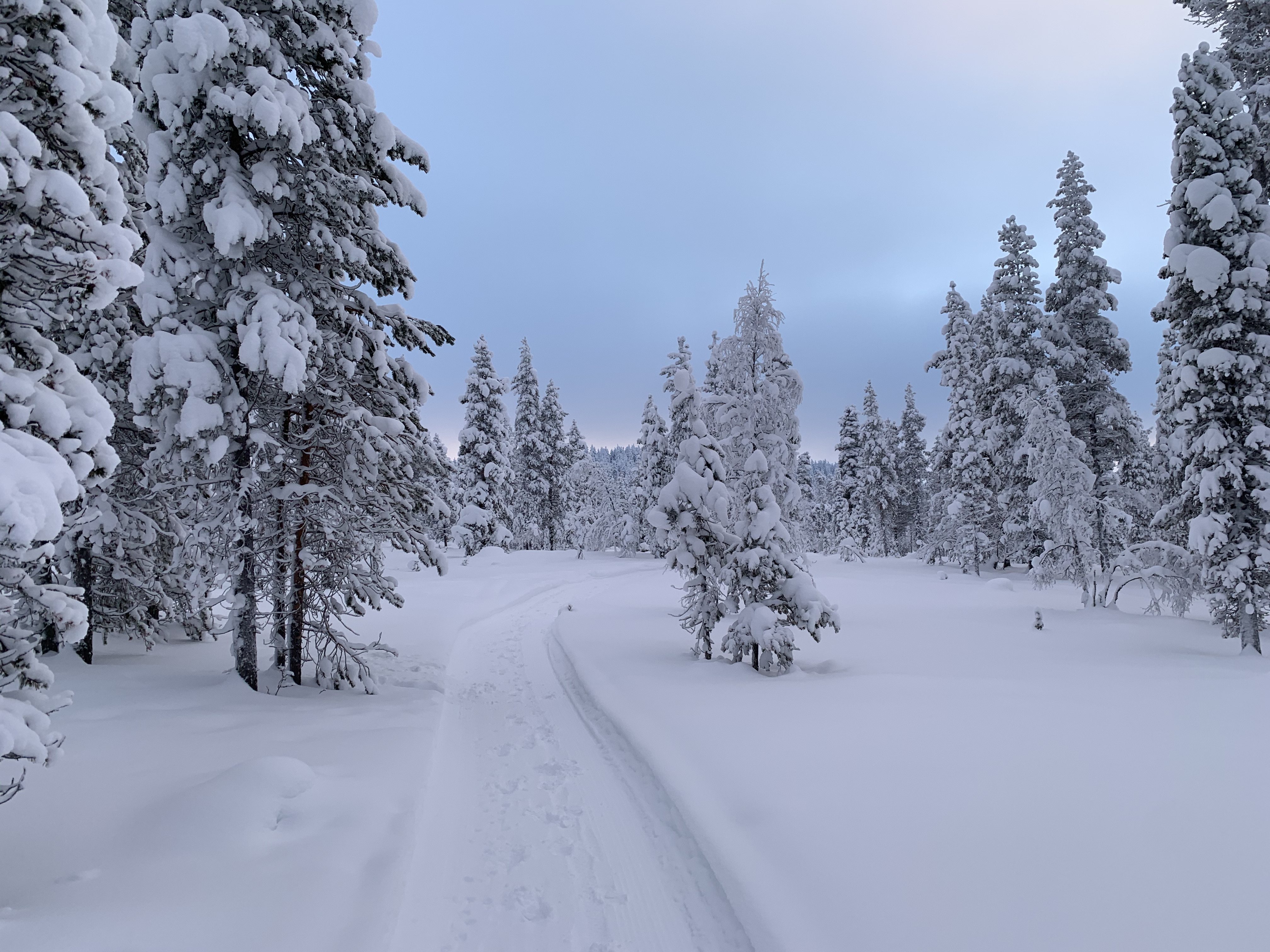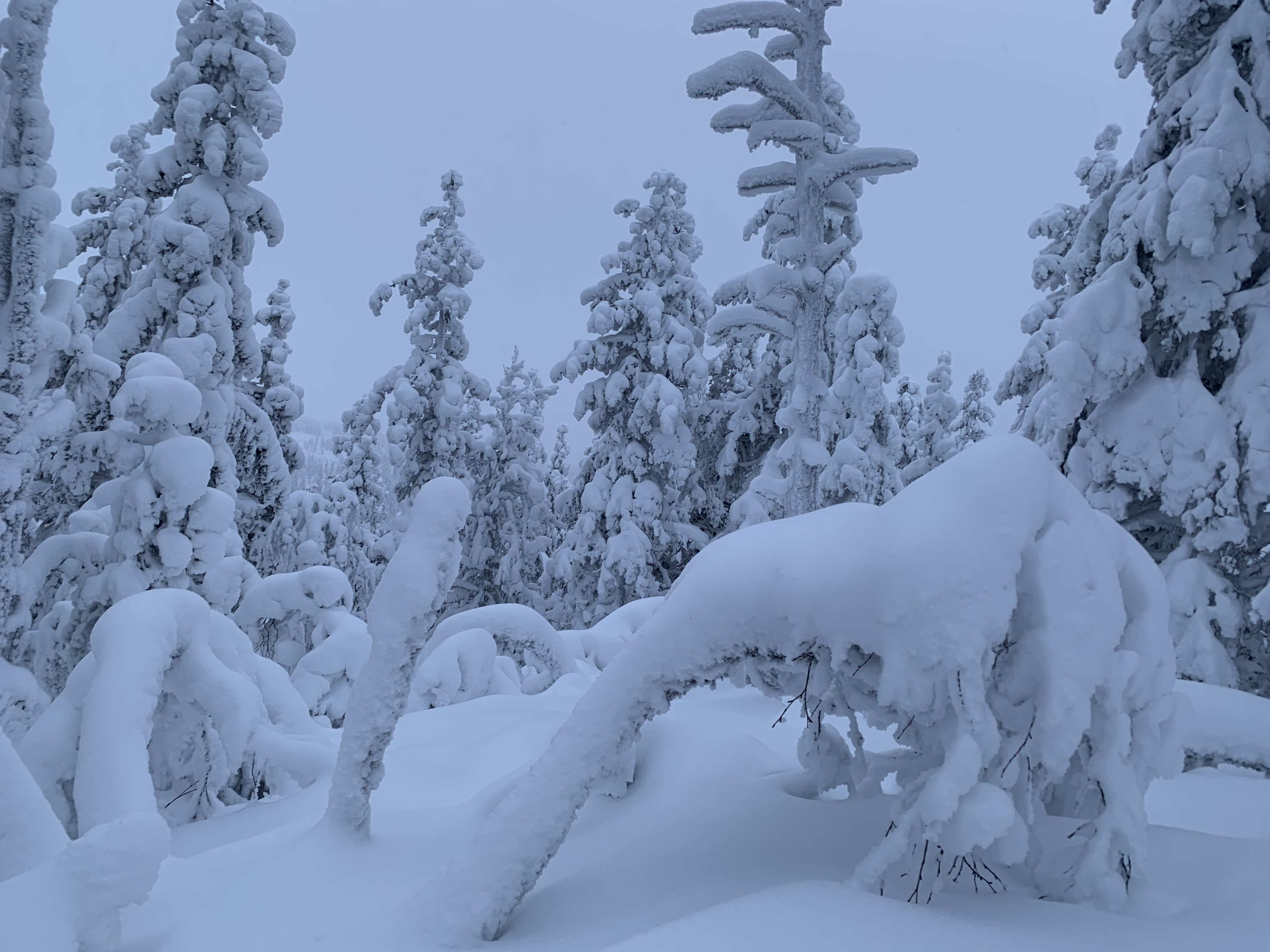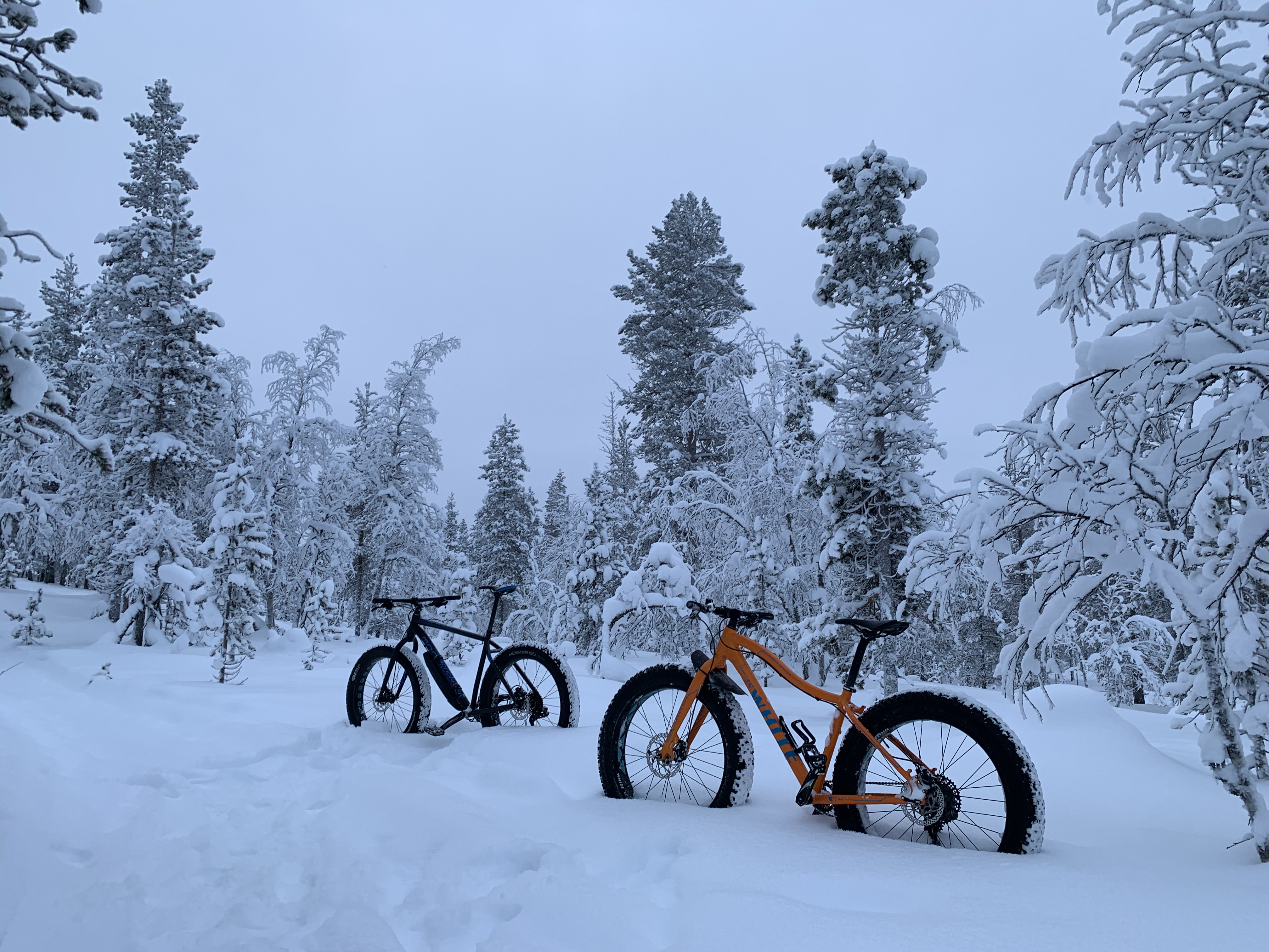 Talvipyöräilystä jäi vähän sekava mielikuva. Toki kelit eivät sitä millään muotoa suosineet. Aivan alkureissusta reitit olivat siedettävässä kunnossa, mutta kaksi viimeistä viikkoa meni lähinnä taluttamiseksi ainakin minun fätin 4″ renkailla, Päivin 4,8″ renkailla pääsi vähän paremmin. Saariselällä filosofia on ajaa reitit illalla, jotta ne kovettuvat yöllä, mutta jos yöllä tulee puoli metriä lunta, niin eihän ne mihinkään kovetu… Resursseista pulaa kuulemma, että ei voi ajaa myös aamulla. FB:stä päätelleen Kiilopäällä jengi oli tyytyväisempää pyöräreitteihin, mutta en sitten tiedä, kun ei siellä asti käyty. Ehkä kuitenkin reittien huoltoa pitäisi jotenkin kehittää, jos talvipyöräilyturismiin halutaan panostaa. Reittejä Saariselän ja Kiilopään välillä kuitenkin on paljon kunhan kelit suosivat.