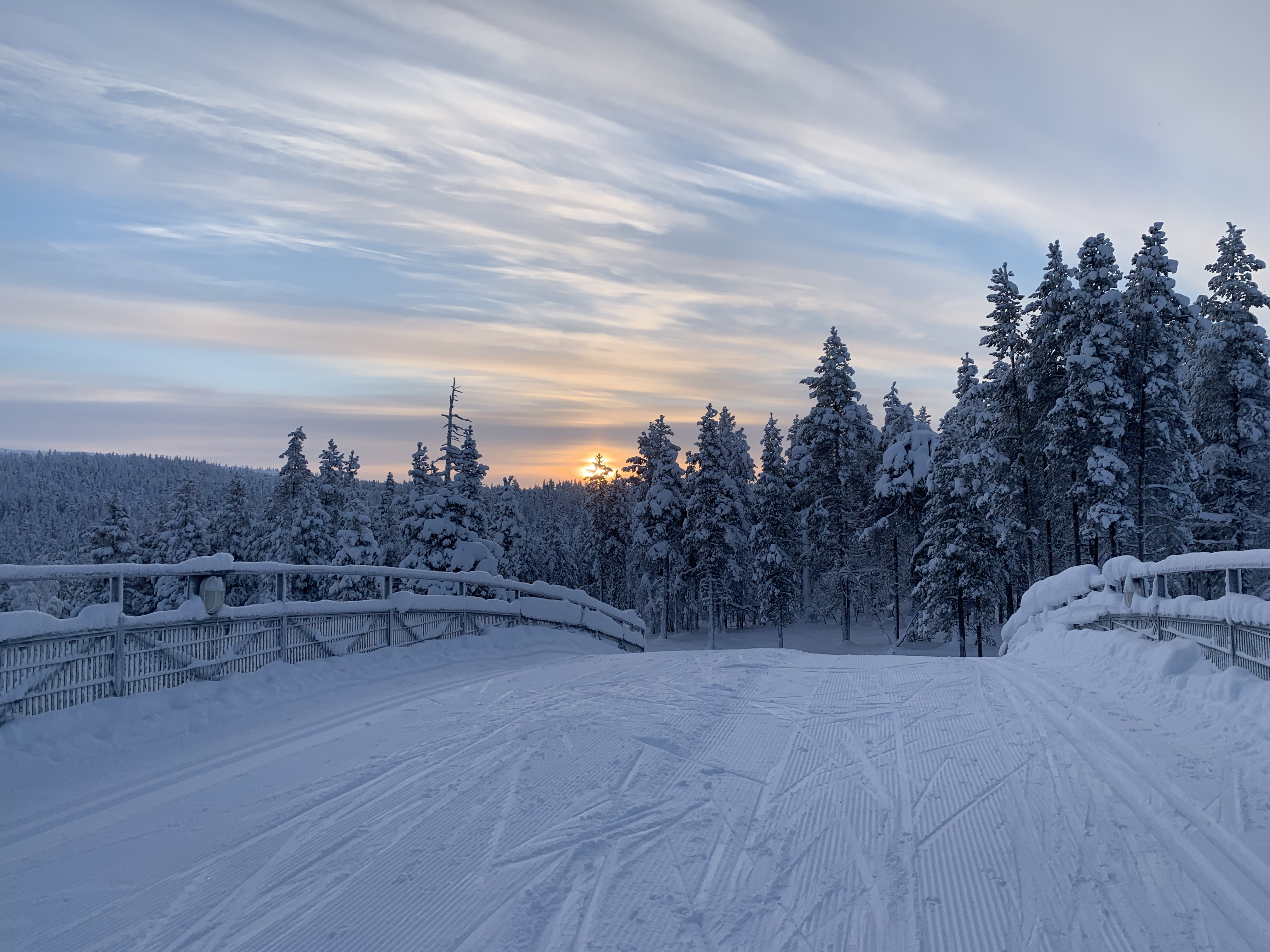 Itse kylä on minun mielestä Suomen viihtyisin hiihtokeskuskylä. Ei mikään Levin ruotsinlaiva, mutta kuitenkin tiivis kylä, jossa on ihan mukavasti palveluita ja varmasti myös elämää silloin kun paikalla on ihmisiä. Kylä myös sijoittuu kauniille paikalle tunturilaakson ja -ylängön väliin ja olen aina ollut sitä mieltä, että nelostien nousu Kaunispään rinteille on ensimmäinen paikka missä tulee sellainen fiilis, että ollaan oikeasti matkalla kohti Jäämerta…
